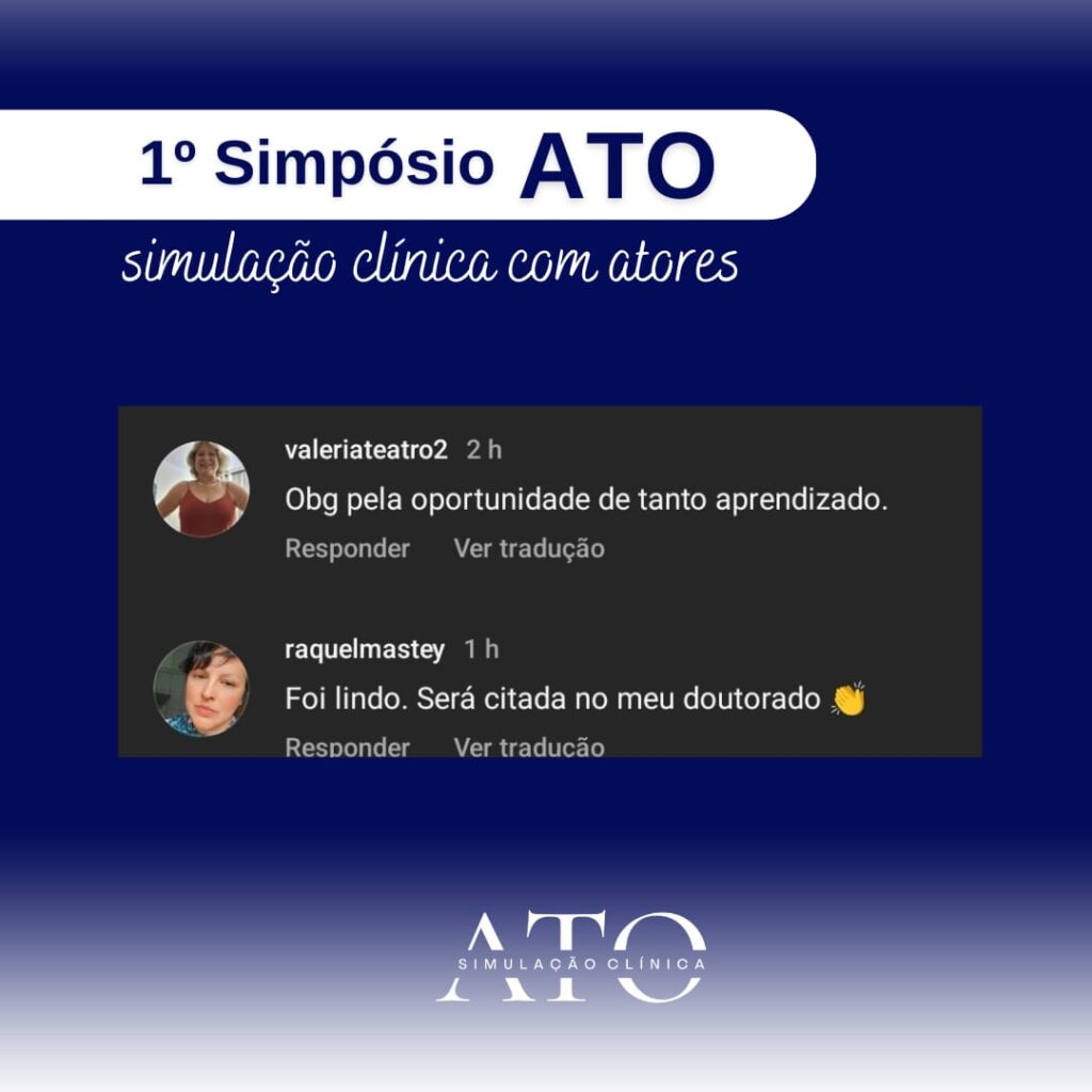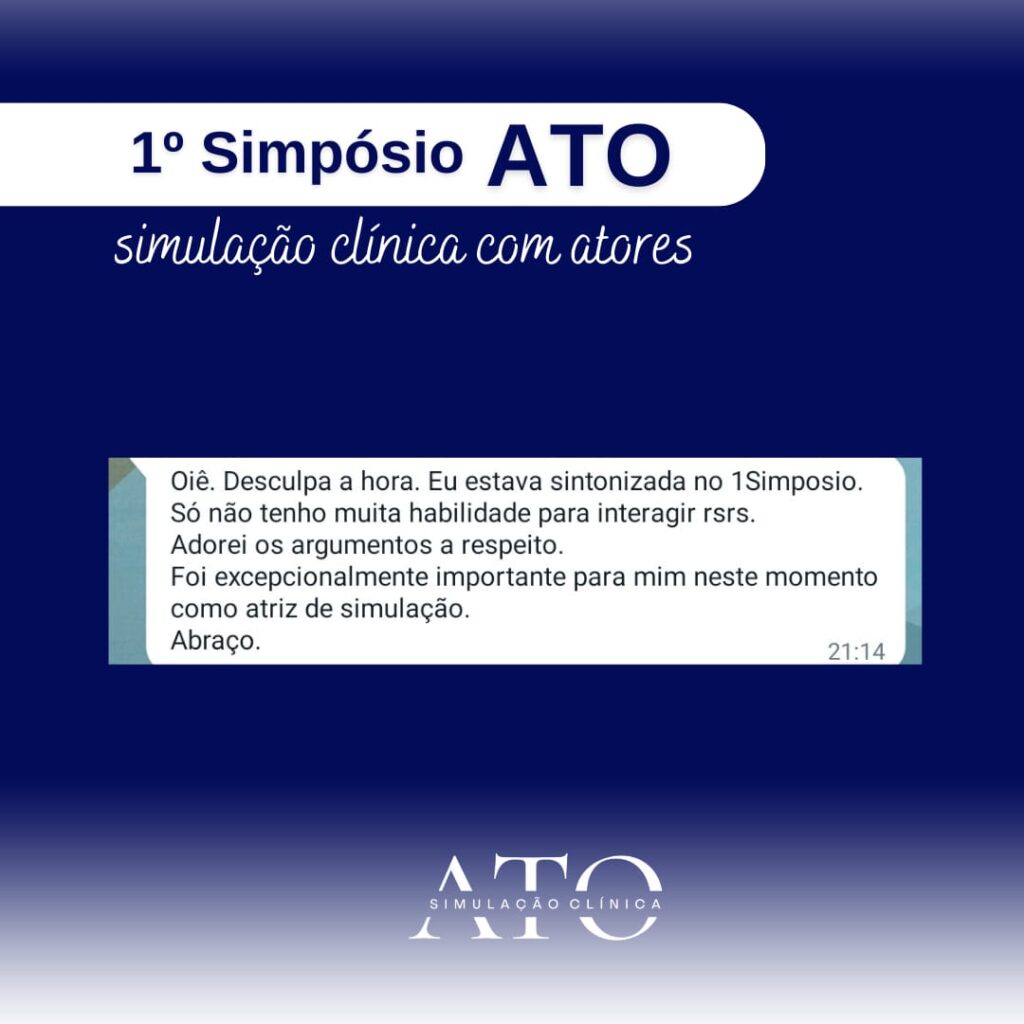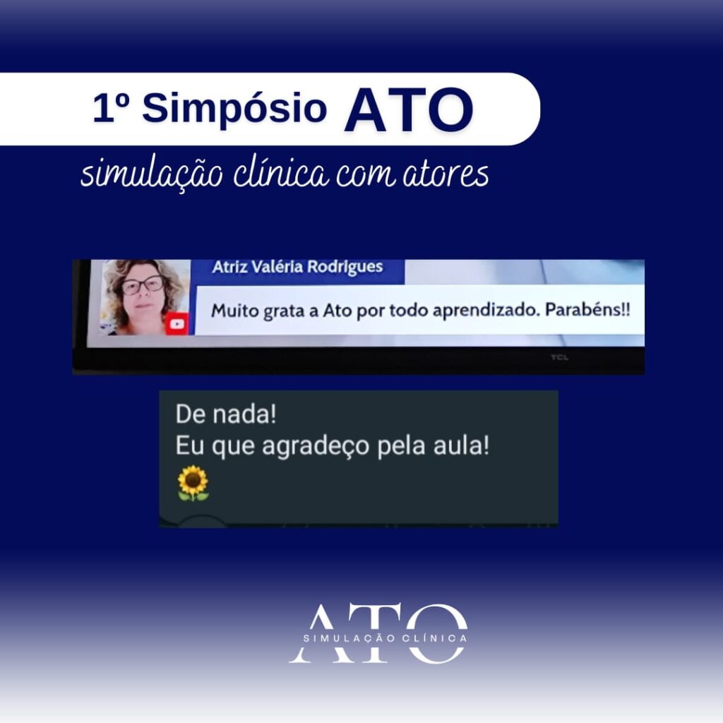 No dia 26 de setembro de 2023 aconteceu o 1º Simpósio ATO – Simulação Clínica com Atores. Encontro que reuniu especialistas da área. Karen Estevam, atriz e fundadora da ATO fez a abertura do evento falando brevemente sobre a empresa e seu propósito.