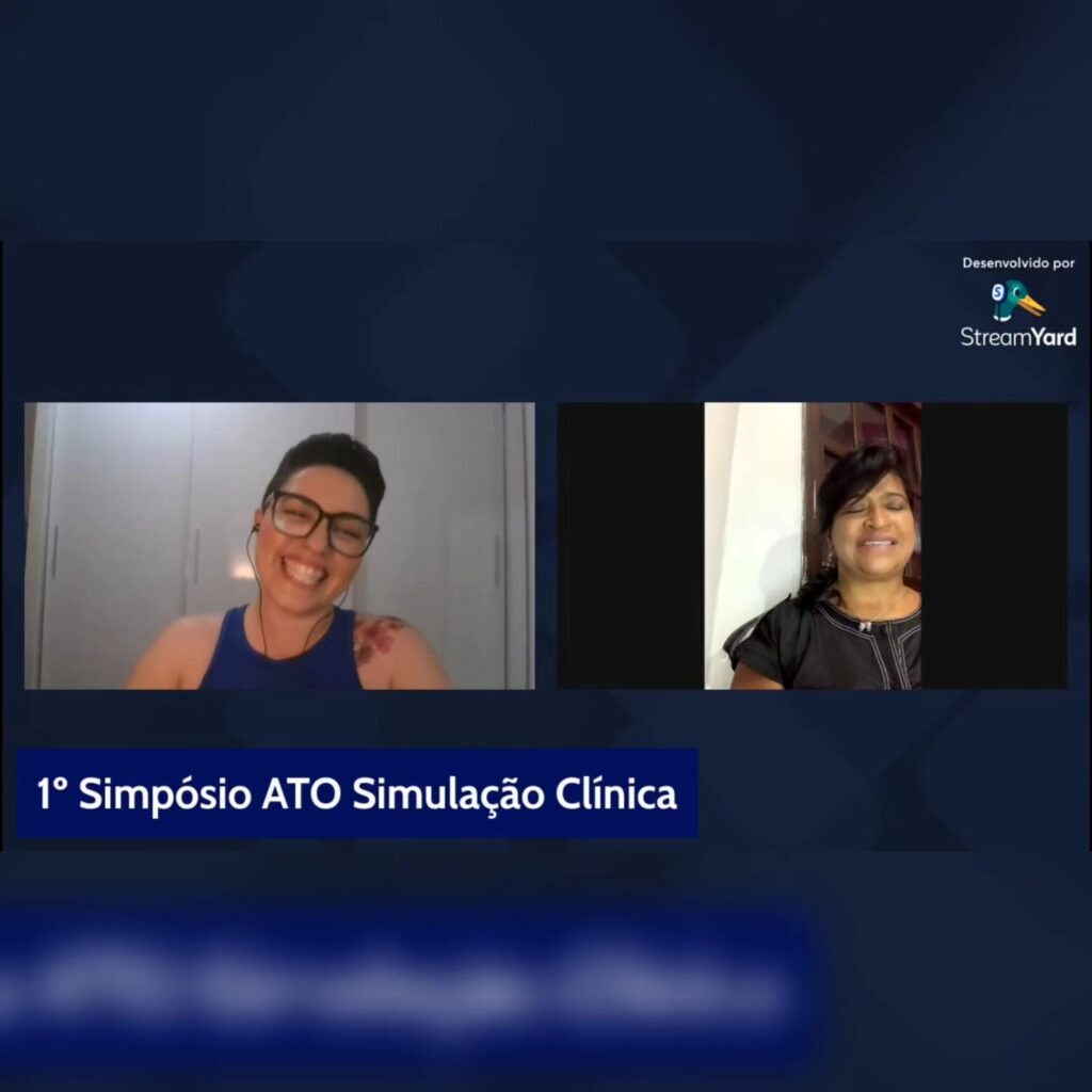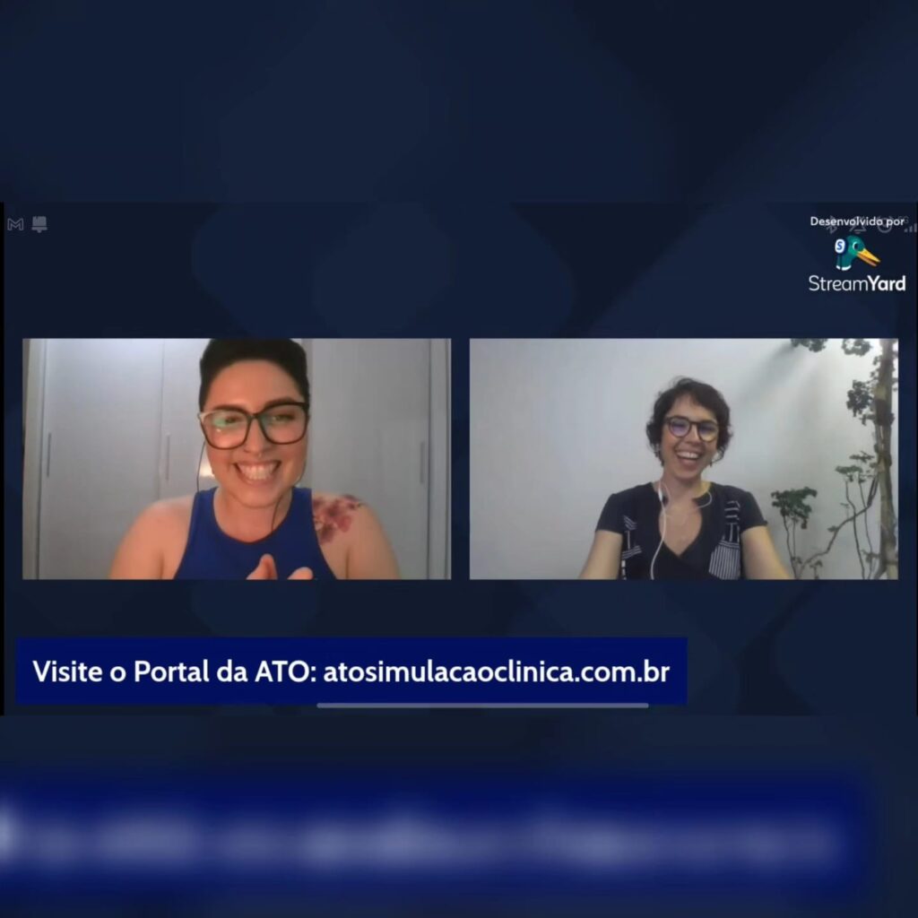 Para fechar este ciclo com muito brilho, a especialista Cristina Chade compartilhou com a audiência reflexões extremamente importantes como: quais as oportunidades para mulheres pretas neste caminho da simulação. Ela seguiu nos mostrando a motivação, os objetivos e os questionamentos na construção da sua tese de doutorado, intitulada “Teatro e verossimilhança entre a arte e a vida – Trajetória e os caminhos do profissional ator-atriz na simulação clínica no Brasil”, que é sua pesquisa em andamento.